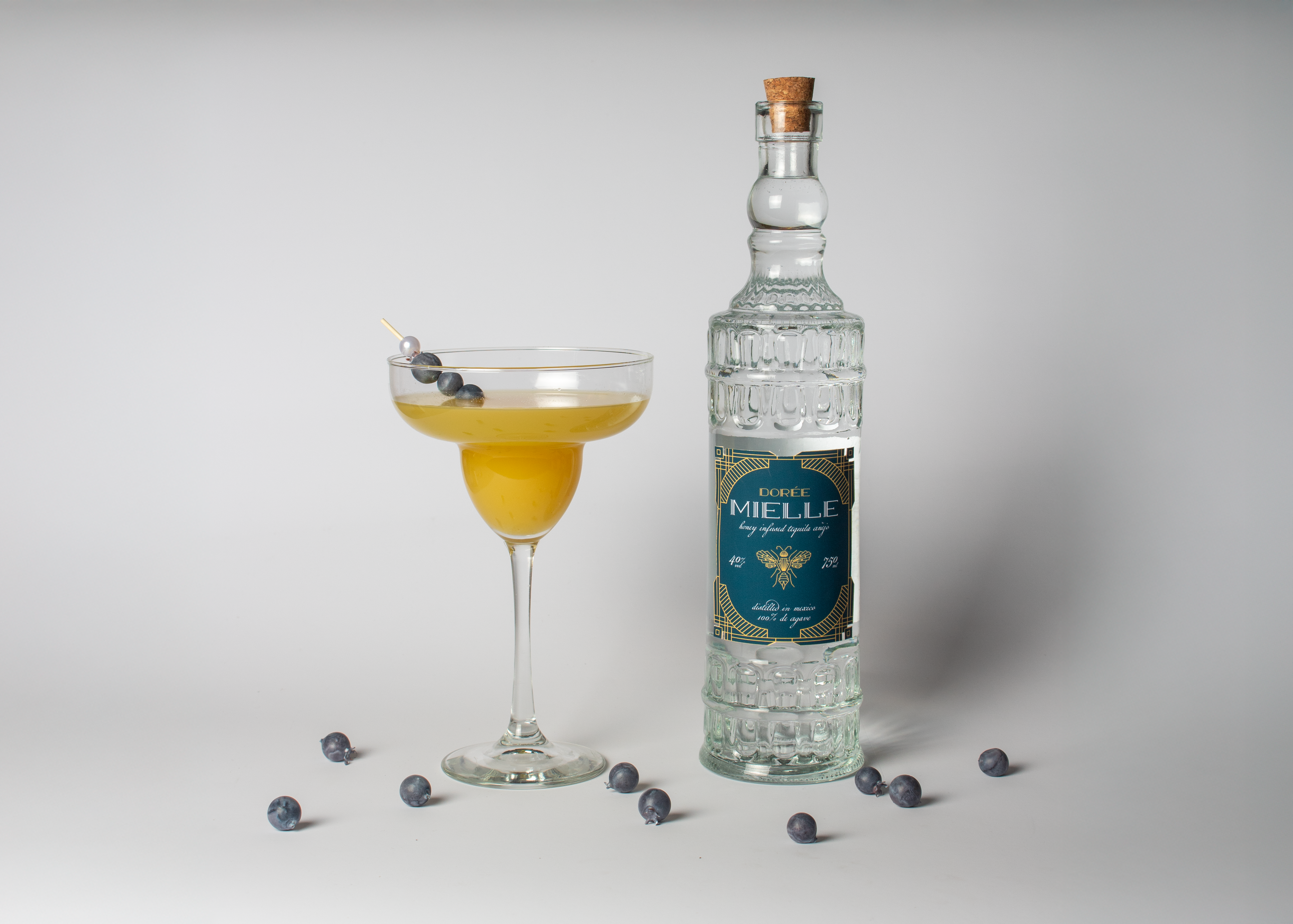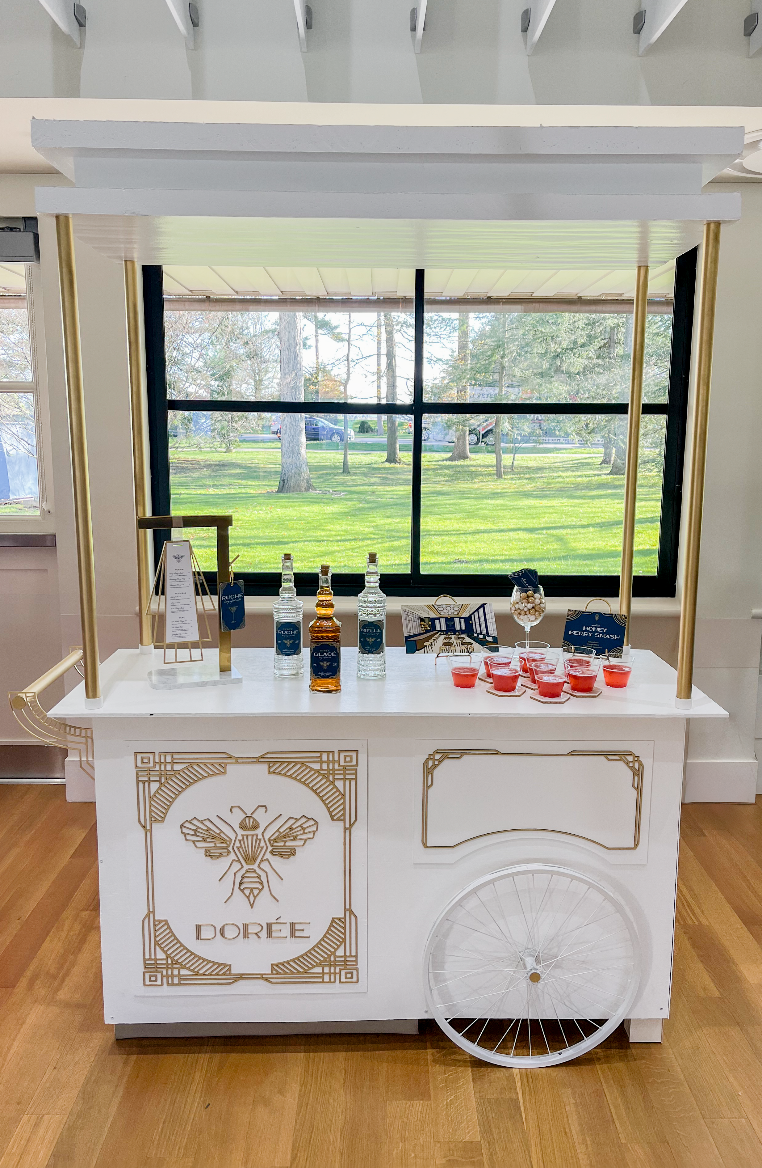 Dorée is a sophisticated brand that blends artisanal honey-infused spirits with a commitment to sustainability and bee conservation. Every element of the experience, from custom liquor bottle labels to the curated menu and coasters, was meticulously designed to reflect Dorée’s mission. The space layout and bar cart display brings this vision to life, offering a luxurious yet environmentally conscious drinking experience.